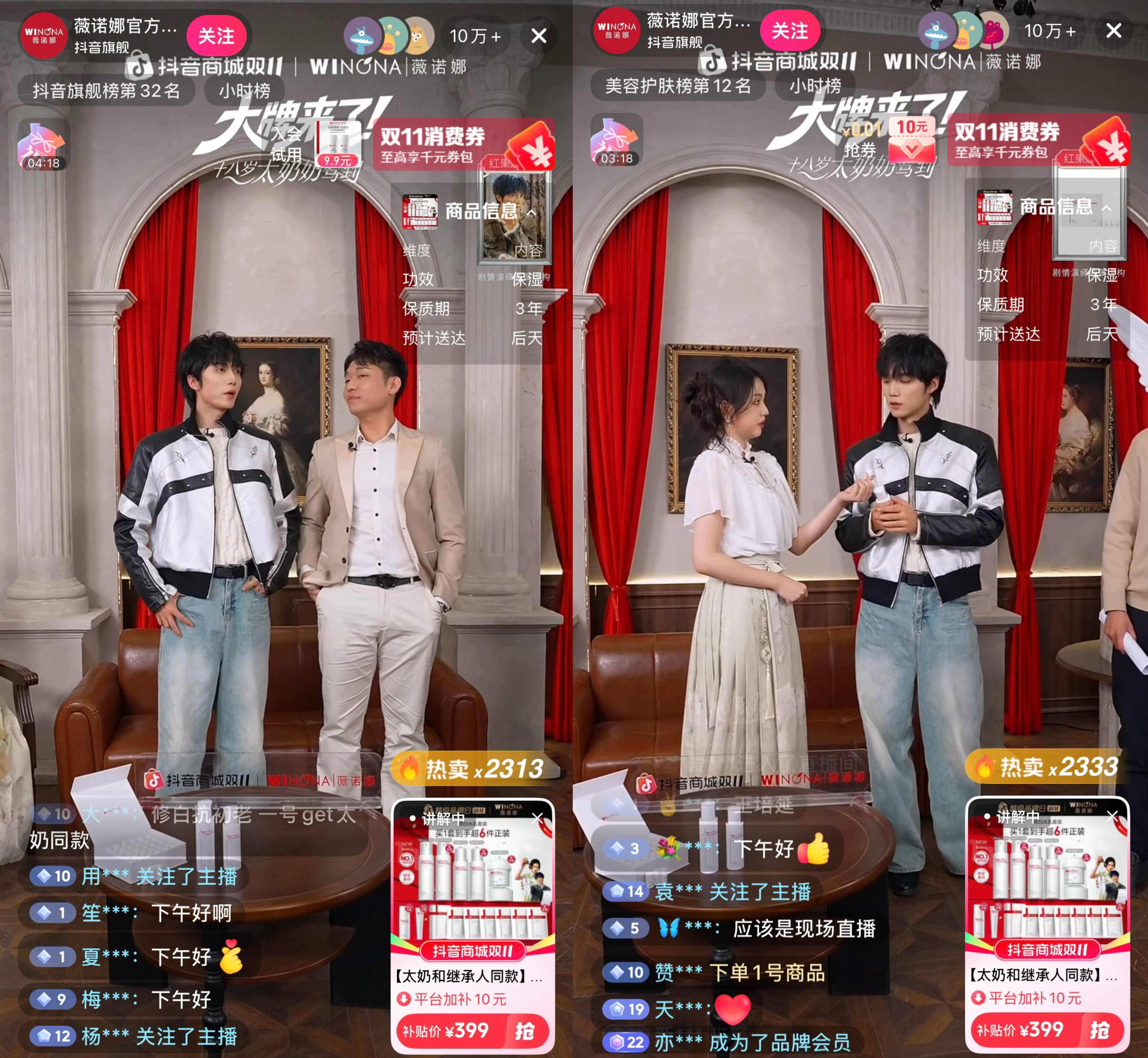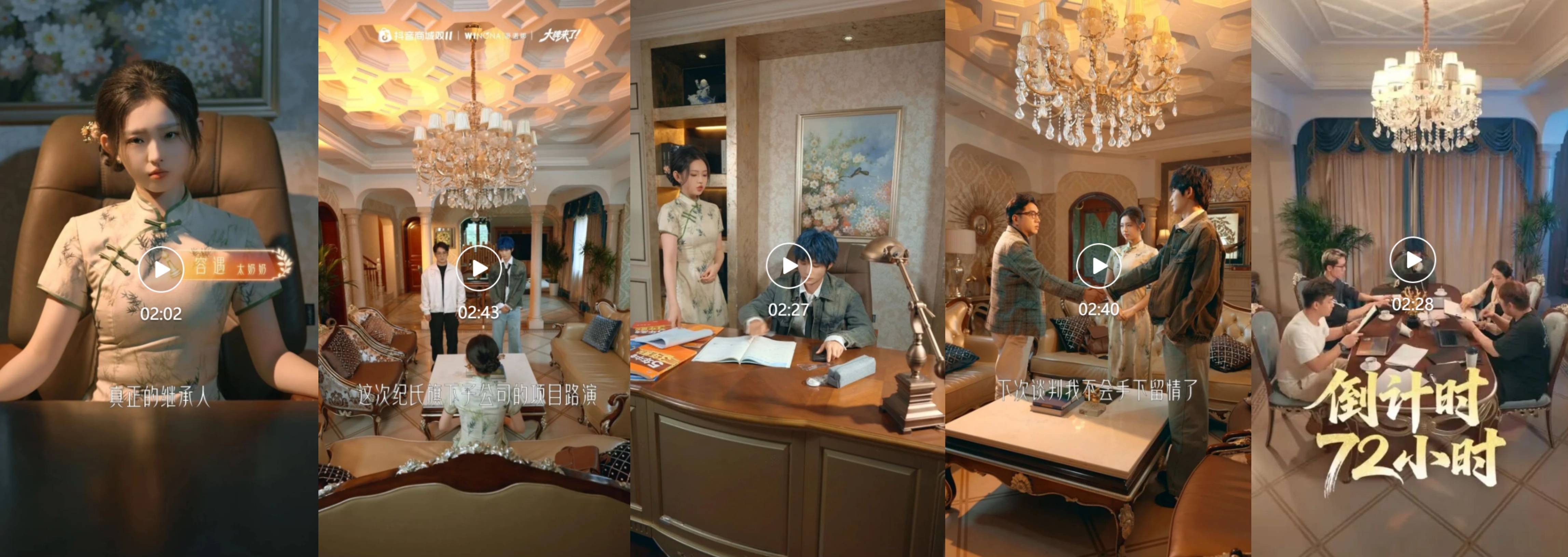 官方合作来得比我的追剧速度还快。上午刚刷完太奶奶的家族商战和纪家男模的情感纠葛,晚上抖音商城「大牌来了」直接给我端上来一盘“沉浸式互动直播”的细糠——抖音商城联合薇诺娜、科大讯飞、自然堂、极萌四大品牌,首创性地把品牌直播间整个搬到《太奶奶3》的故事线里,开启一场“家族继承人试炼”。品牌好物则变身太奶奶帮助纪舟野反败为胜的武器,是解锁故事的关键“戏眼”。