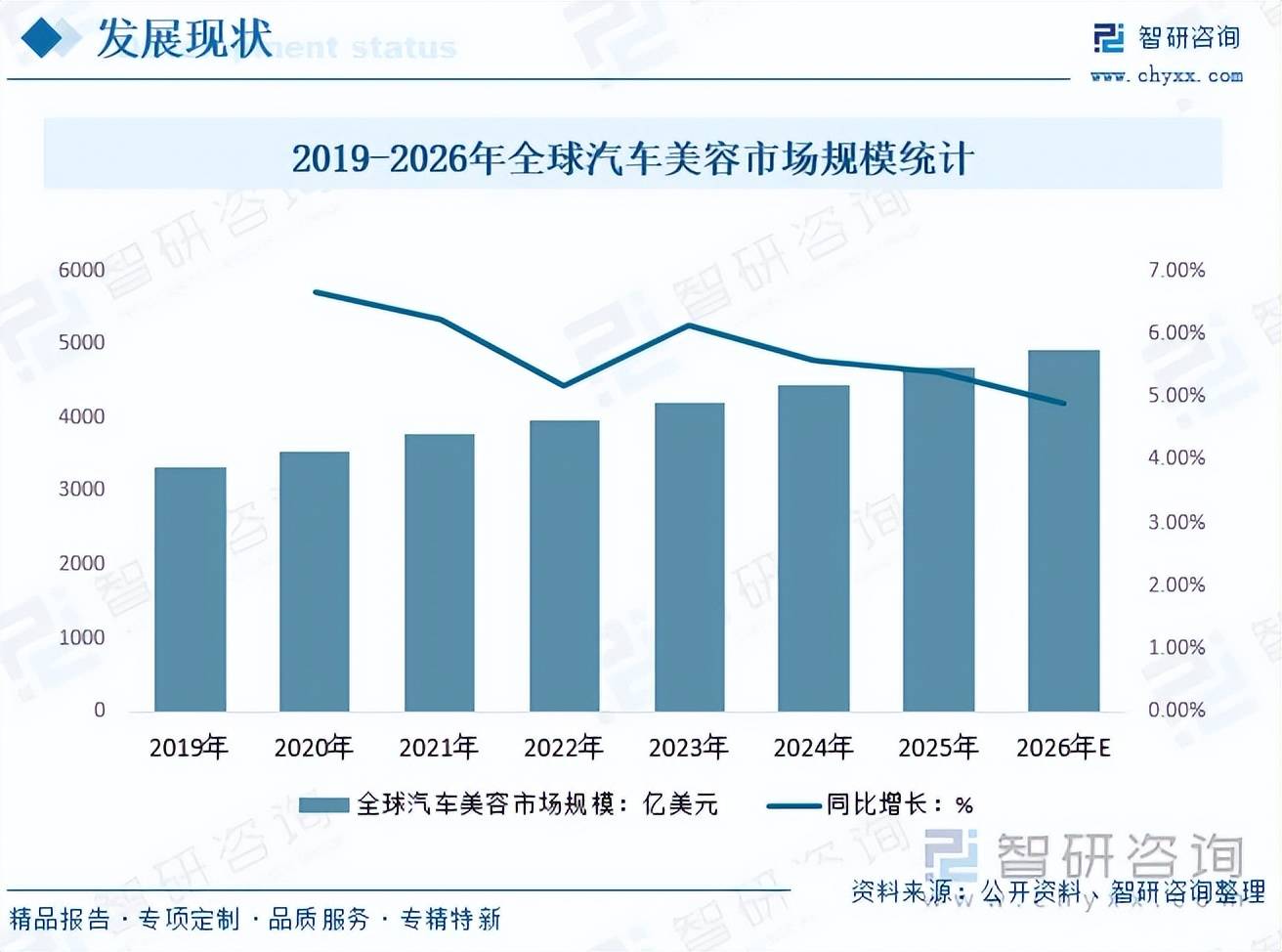 在西方工业发达国家,汽车美容业几乎与中高档轿车的普及同步兴起。经过数十年的发展,到20世纪80年代,汽车美容已成为全球汽车产业中不可忽视的一环。随着全球汽车保有量的持续增长和消费者对汽车保养意识的增强,汽车美容市场规模不断扩大。据统计,2025年全球汽车美容市场规模已增至4688亿美元,预计2026年将接近5000亿美元,显示出行业稳健的增长态势。