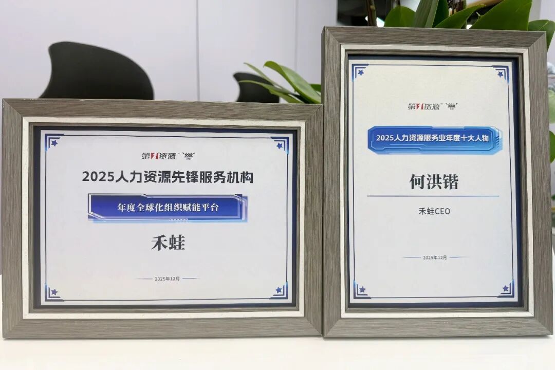 当晚的人力资源先锋评选颁奖典礼上,禾蛙收获了行业的双重认可。禾蛙平台获评“2025人力资源先锋服务机构——年度全球化组织赋能平台”,禾蛙CEO何洪锴获“2025人力资源服务业年度十大人物”称号。