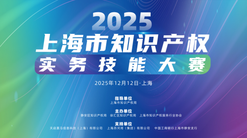 2025年12月12日下午,2025年上海市知识产权实务技能大赛在静安区汇能大悦中心收官。国家知识产权局公共服务司副司长葛富斌、静安区副区长朱羡、静安区知识产权局局长王颉鸣、上海市知识产权服务行业协会会长范征等出席活动。