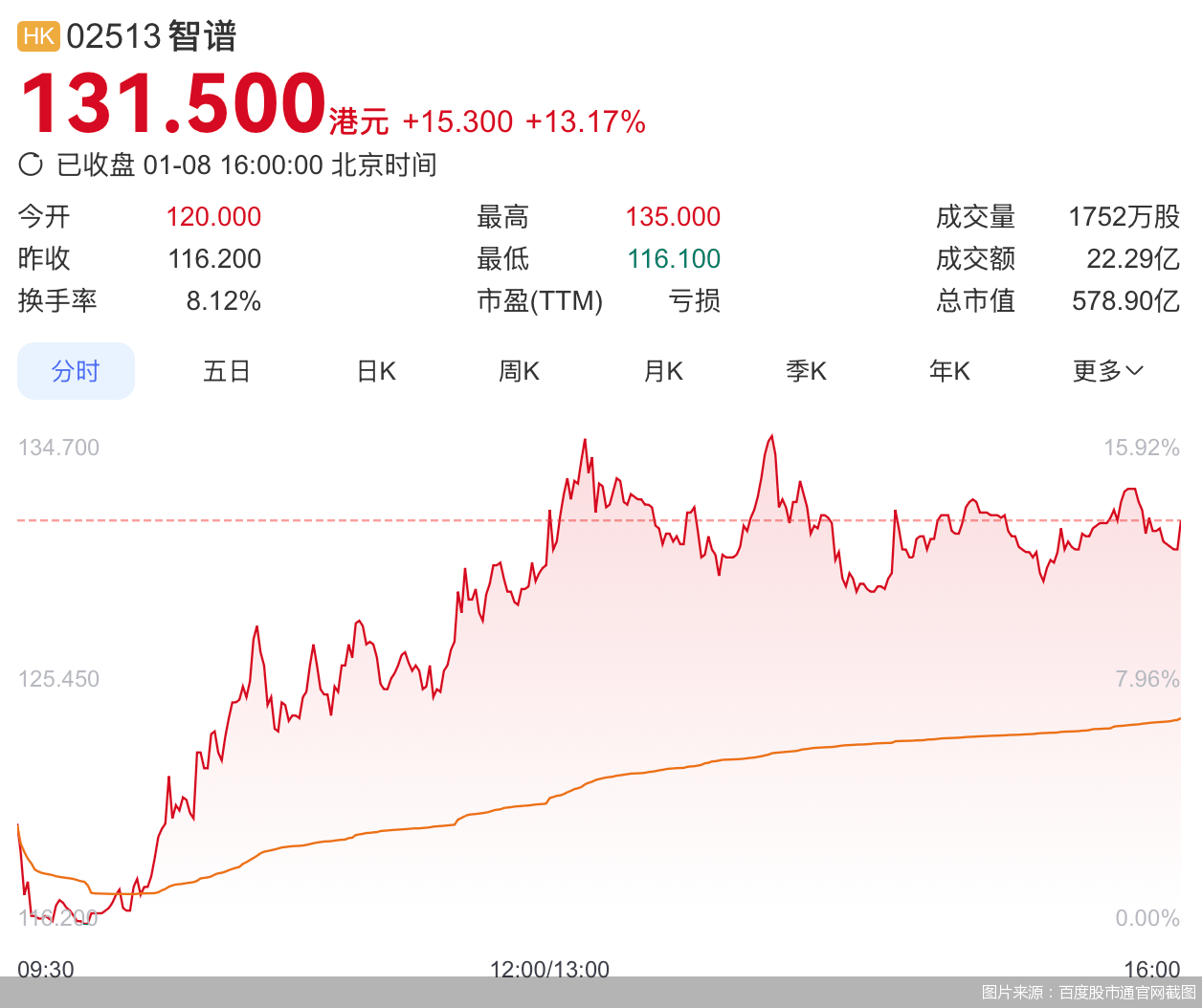 1月8日,港交所迎来“大模型第一股”智谱的正式挂牌。开盘价定在120港元,较116.2港元的发行价上涨3.3%,收盘时报131.5港元,总市值攀升至578.9亿港元。作为首家登陆资本市场的中国AI大模型企业,智谱的上市不仅为投资者提供了观察国产大模型商业化路径的窗口,也让整个行业面临资本市场的检验。